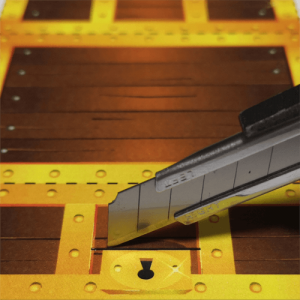 - Schneide entlang der schwarzen Linie vorsichtig einen Schlitz für den Riegel aus (die Kinder brauchen dabei Hilfe).