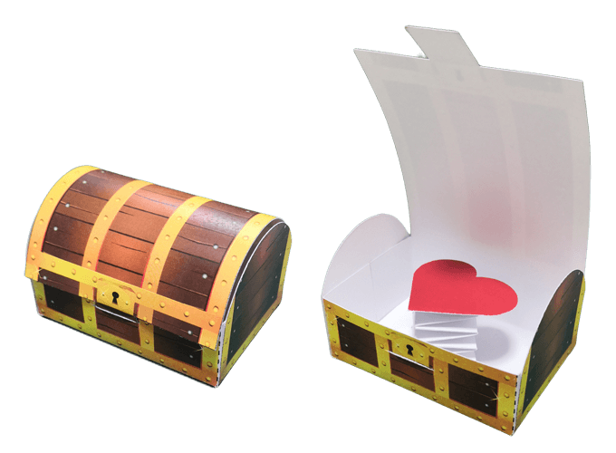 - Klebe das Pop-Up-Herz auf den Innenboden deiner Schatztruhe.