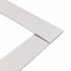 - Nimm den L-förmigen Papierstreifen. Falte die längere Seite an der grau gestrichelten Linie über die kürzere Seite.