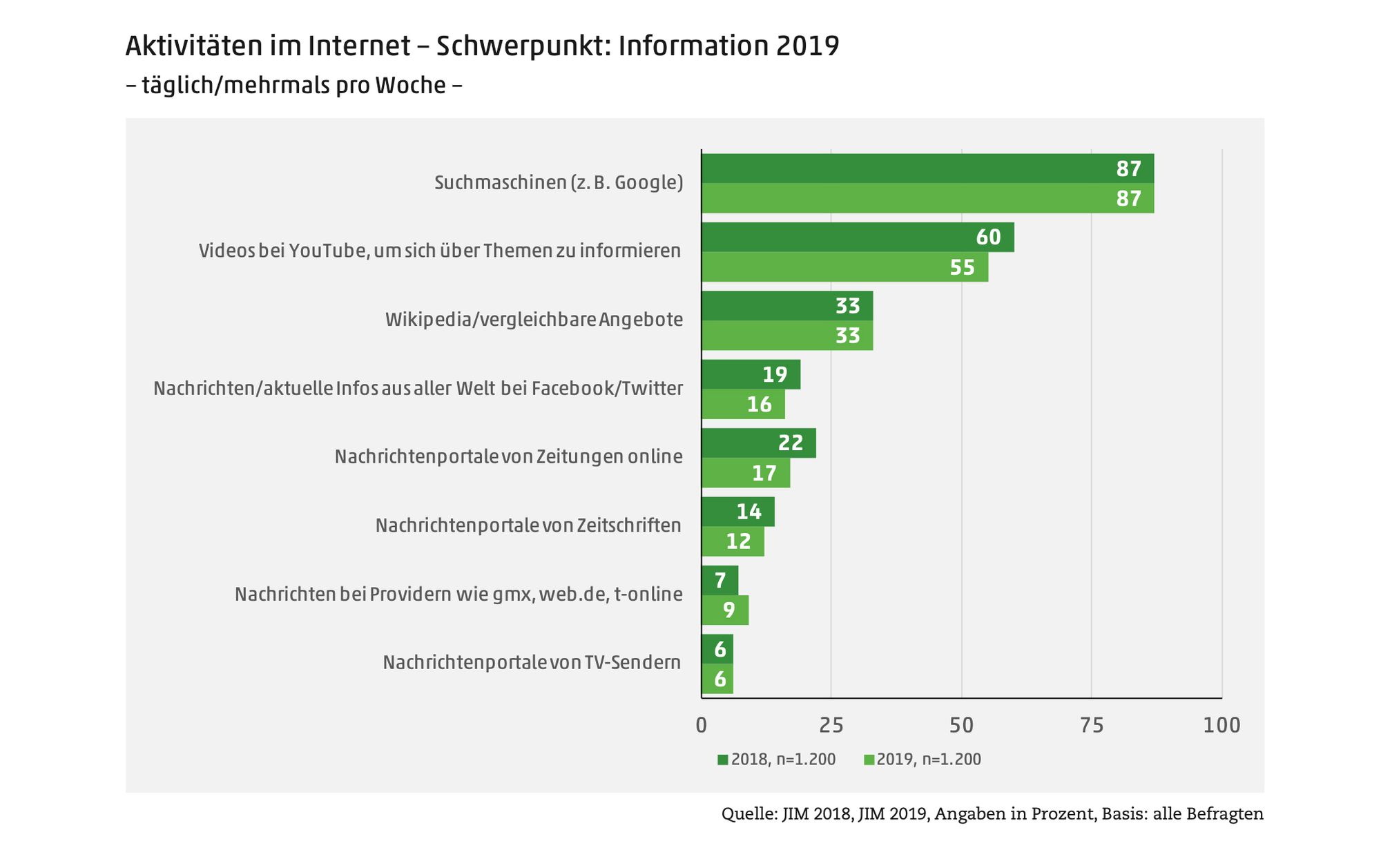 - Tiefer in die Thematik der Mediennutzung von Jugendlichen einarbeiten kannst du dich mit der JIM-Studie.