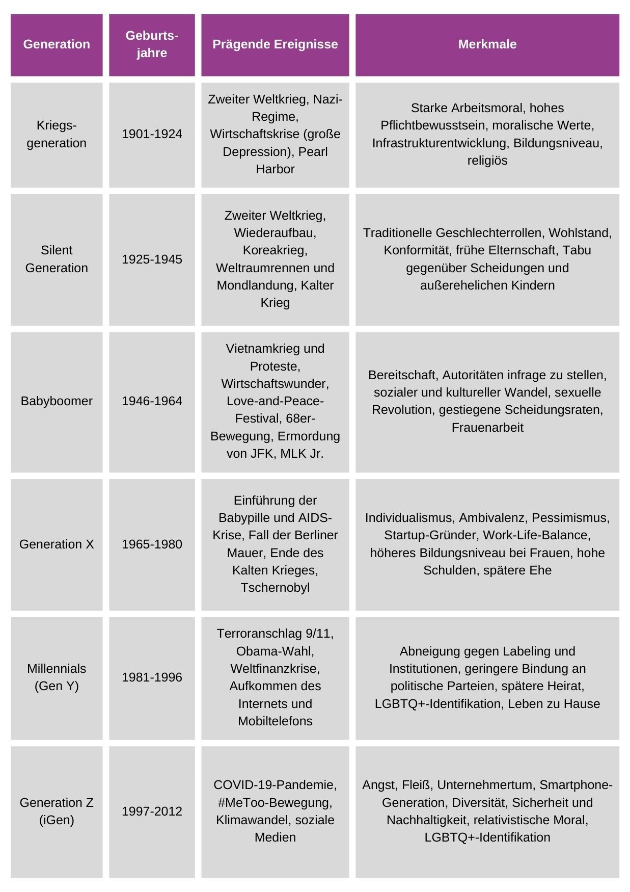 ‌Was sind die wichtigsten Generationen des 20. und 21. Jahrhunderts?