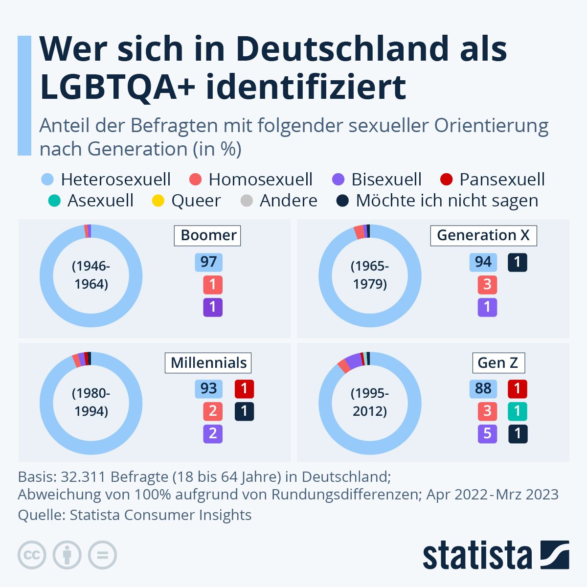 Das Thema Sexualität erfährt bei den Millennials und insbesondere bei der Generation Z einen Wandel hin zu einer weniger traditionellen Auffassung. Im Jahr 2021 bezeichnen sich bereits 11 % der Generation Z als LGBTQ+, im Vergleich zu 7 % der Millennials.