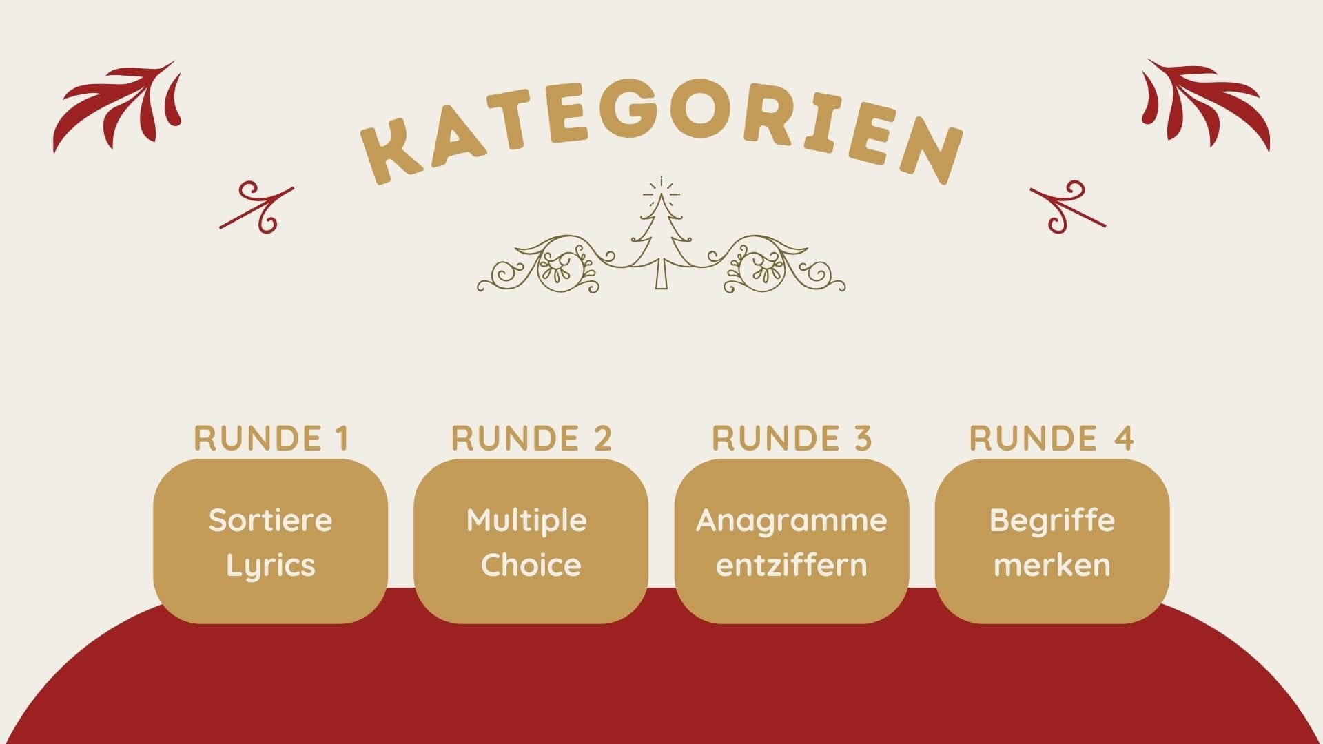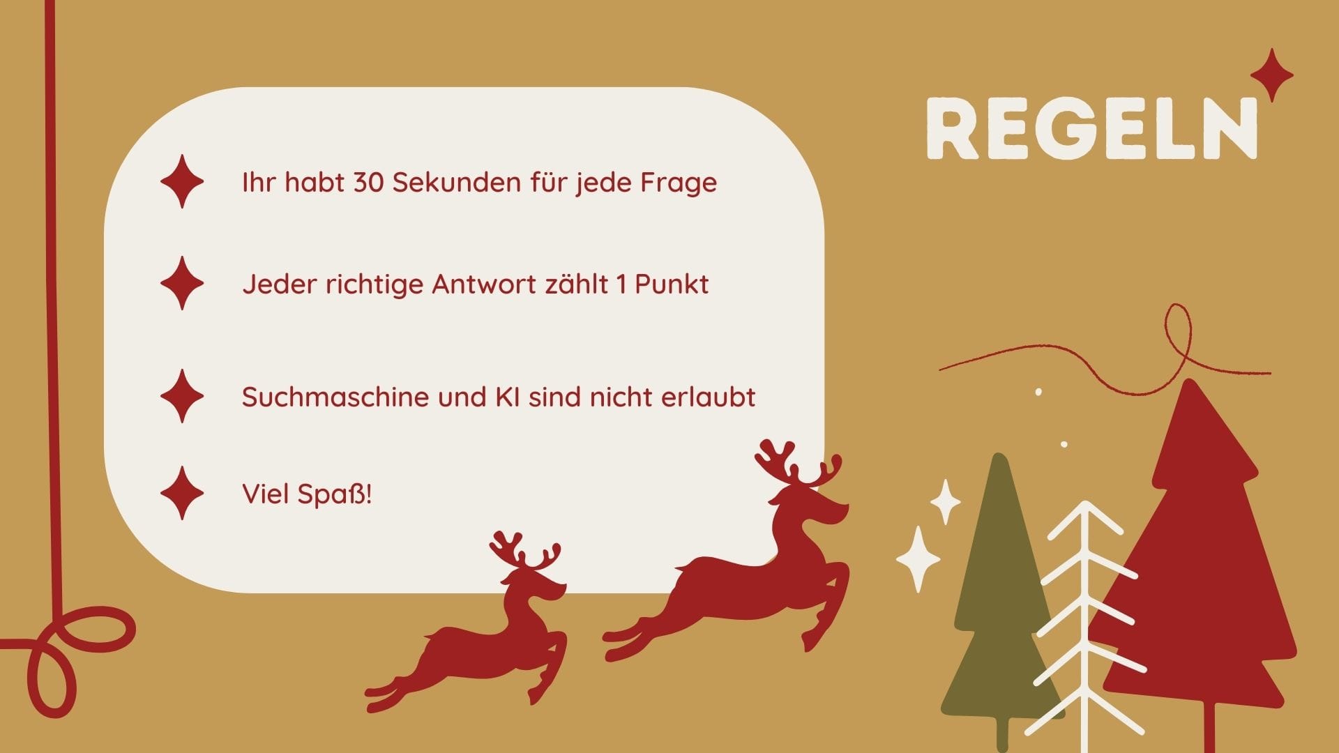 Das Weihnachtsquiz ist ein spannendes Spiel, das ihr sowohl persönlich als auch virtuell via Zoom spielen könnt.