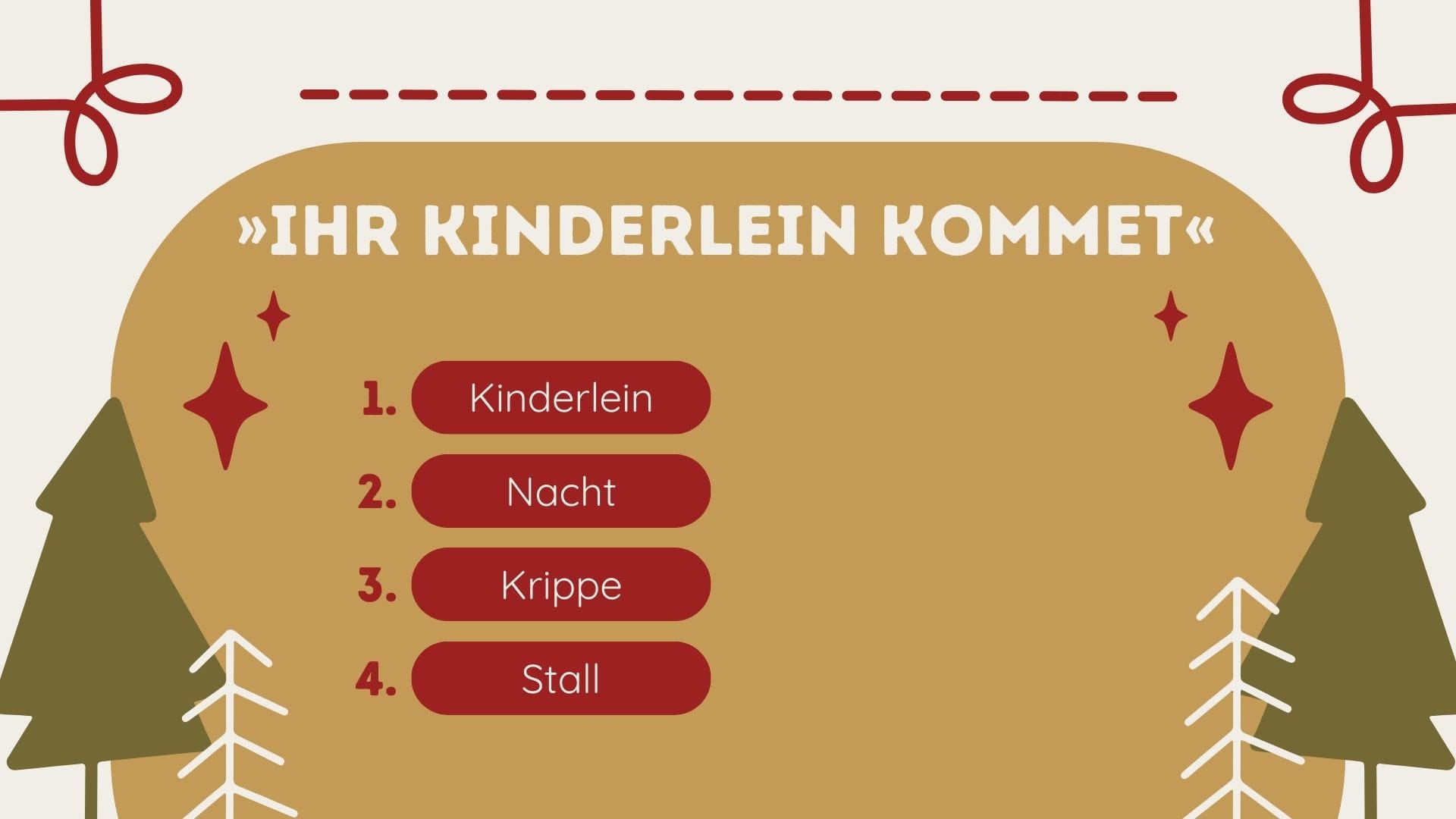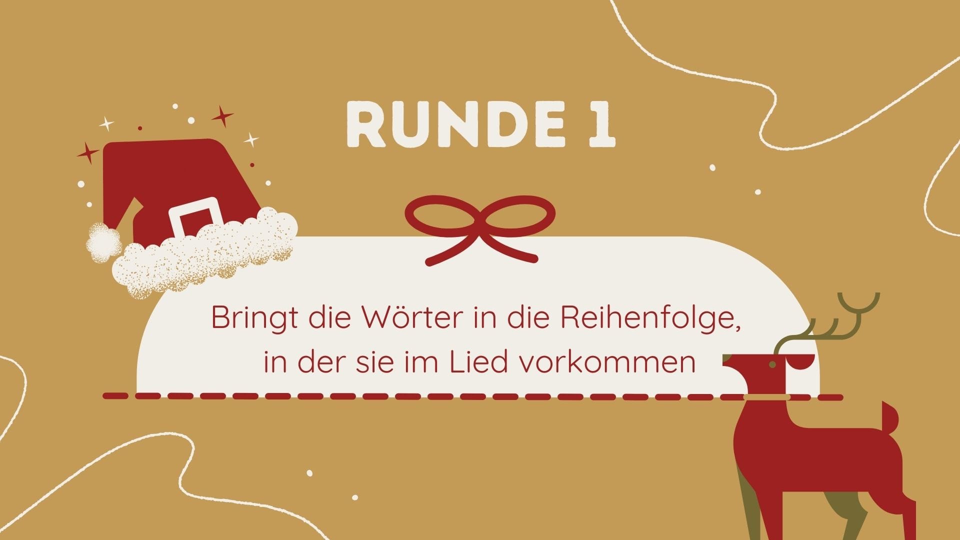 - Runde 1 Sortiere Lyrics: Bringt die Wörter in die richtige Reihenfolge, wie sie im Weihnachtslied vorkommen.