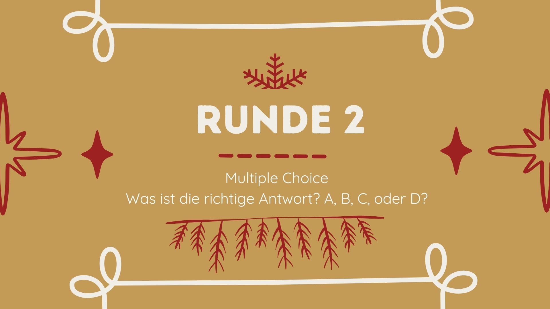 - Runde 2 Multiple Choice: Wählt die richtige Antwort aus den Optionen A, B, C oder D.
